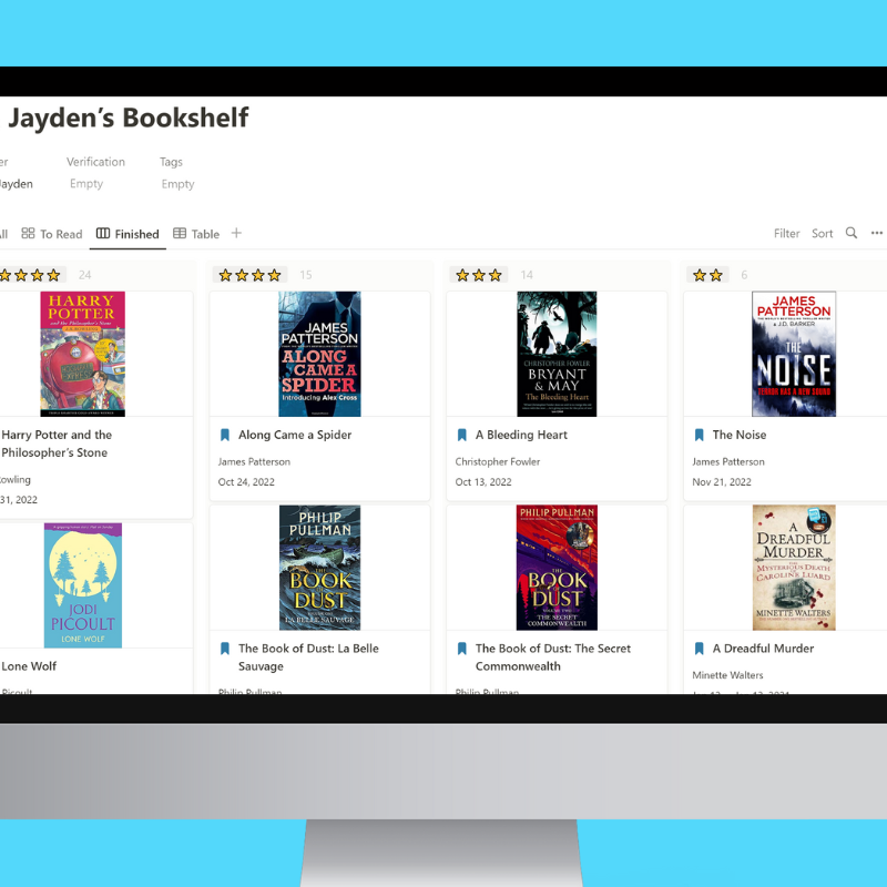 A great looking database for you to store the books you want to read, as well record the ones you have read. You can even rate them out of ⭐⭐⭐⭐⭐